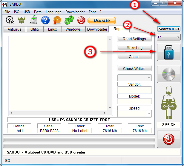 5. Jika teman-teman akan membuat multi bootable pada USB (flash disk) klik pada bagian Search USB kemudian pilih drive letter USB yang akan digunakan, jika sudah, Klik pada bagian gambar USB